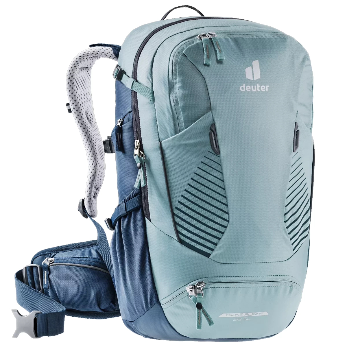 De Trans Alpine is een betrouwbare metgezel, waar u ook gaat. Hij heeft een royale bergruimte, die bovendien een stretchfunctie heeft om zich aan te passen aan alles wat mee moet op tournee. De rugzak kan intern in twee helften worden verdeeld met een ritssluiting om twee aparte compartimenten te creëren. Een groot, flexibel voorvak met ritssluiting biedt ruimte voor accessoires en een kleiner vak beveiligt kleinere kostbaarheden op betrouwbare wijze. De heupvinnen van netmateriaal zorgen voor een goede ventilatie en een goede pasvorm. Het ingebouwde frame kan worden aangepast, zodat de rugzak iets hoger of lager op de rug zit.