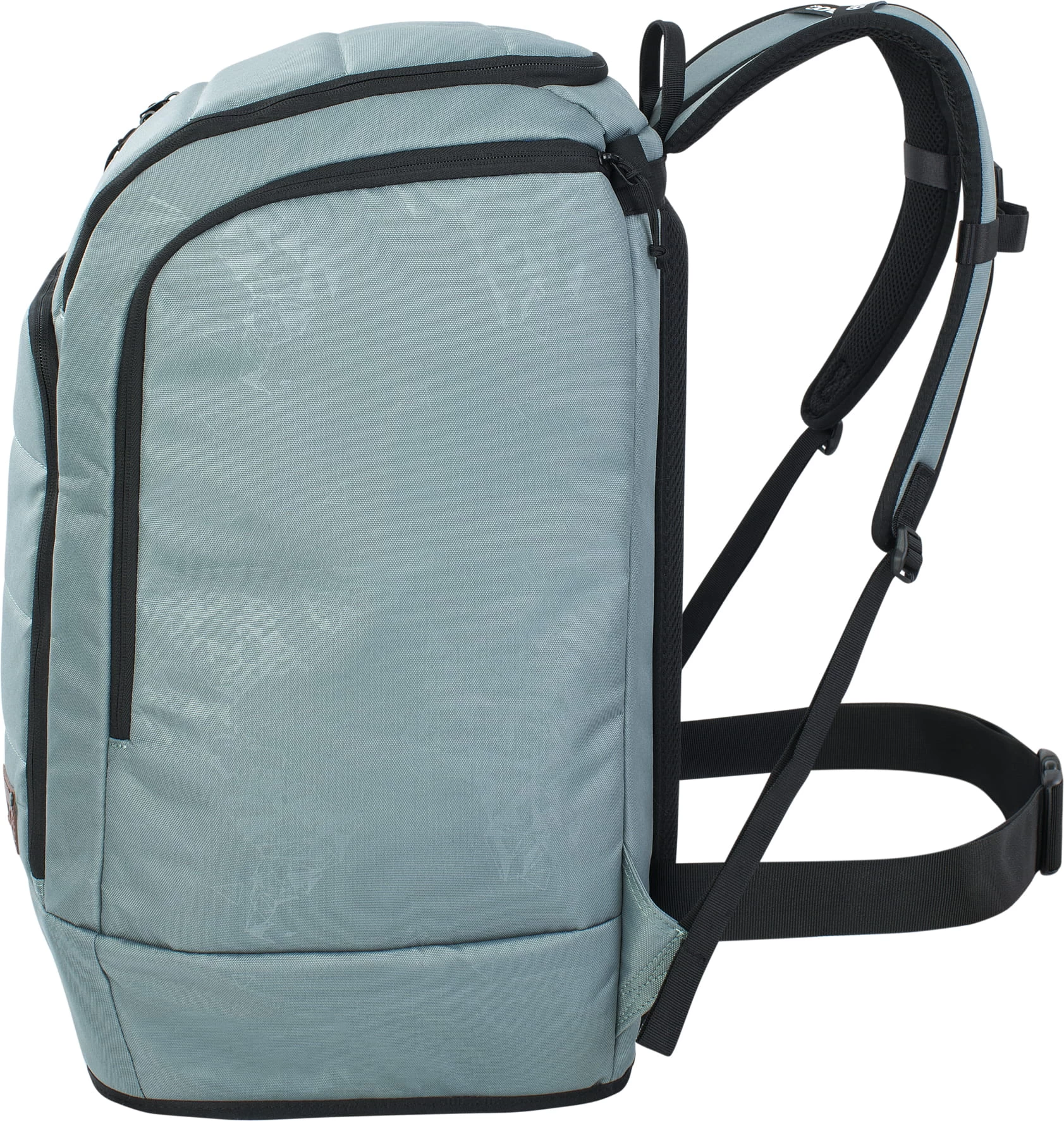 - Twee grote hoofdvakken voor laarzen, helm of kleding en een zijvak met rits en bevestigingspunten voor kleine uitrusting