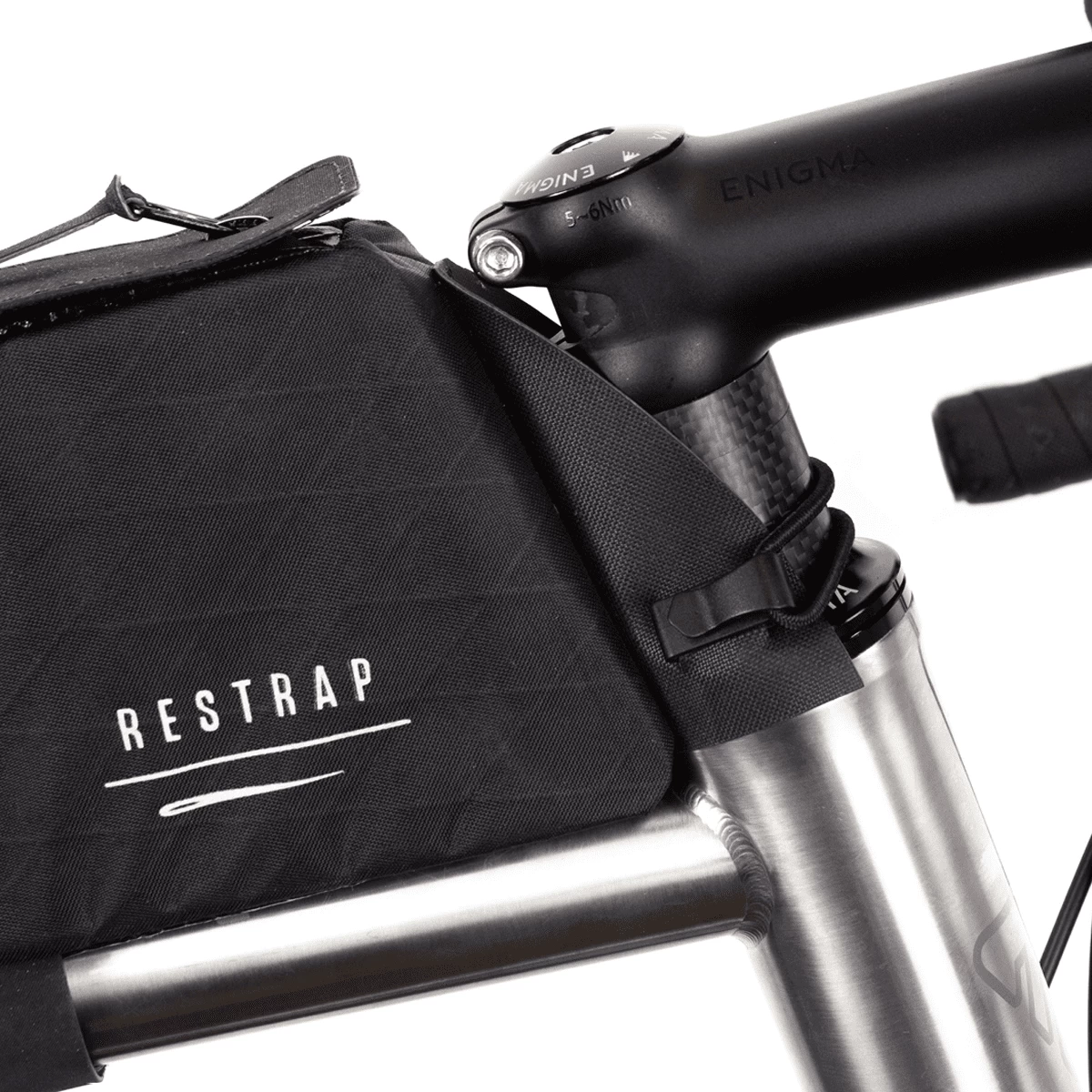 Een verstelbare framebevestiging maakt combinatie met de meeste frametassen en alle Restrap frametassen mogelijk.
