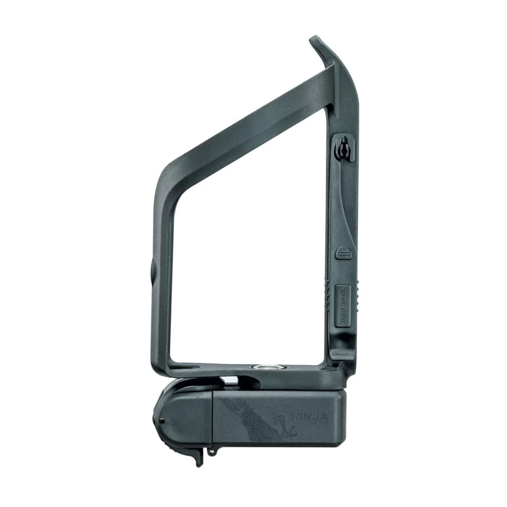 De Ninja Cage doet in niets onder voor zijn naamgenoten: Aanpassen en zijn werk met vlag en wimpel doen. Zelfs in kleine frames die anders niet compatibel zijn met de Ninja-serie, kan hij met het bijgeleverde rubberen kussentje en kabelbinders op de bovenste bidonhouderbevestiging worden gemonteerd. Hierdoor kunnen de gereedschapskoffers van de Ninja T-serie, de Ninja CO2 of de Ninja Pouch Road bag naar wens onder de Ninja Cage worden gemonteerd.